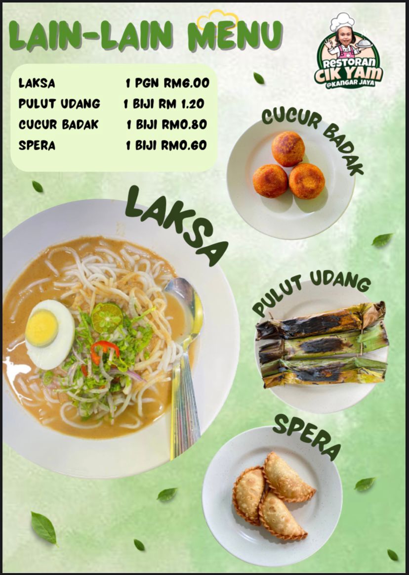 At Restoran Cik Yam, a cozy brunch spot nestled in Kangar Jaya, you’re invited to indulge in authentic Northern Malaysian flavors. The menu is a delightful celebration of local cuisine, where staples like laksa and Tenggiri Curry Set shine. Customers rave about the asam pedas, which offers a unique twist distinct from its Melakan counterpart, showcasing the region's culinary charm.